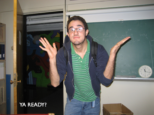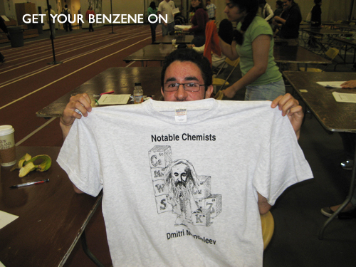 After much deliberating over whether it was more chemically and lyrically acceptable to say ‘get your H on’ or ‘get your benzene on’ (and a little editing on my part) Javi finally wrote his hit single and is now well on his way to fame and fortune. And by fame and fortune, I mean he won a t-shirt.