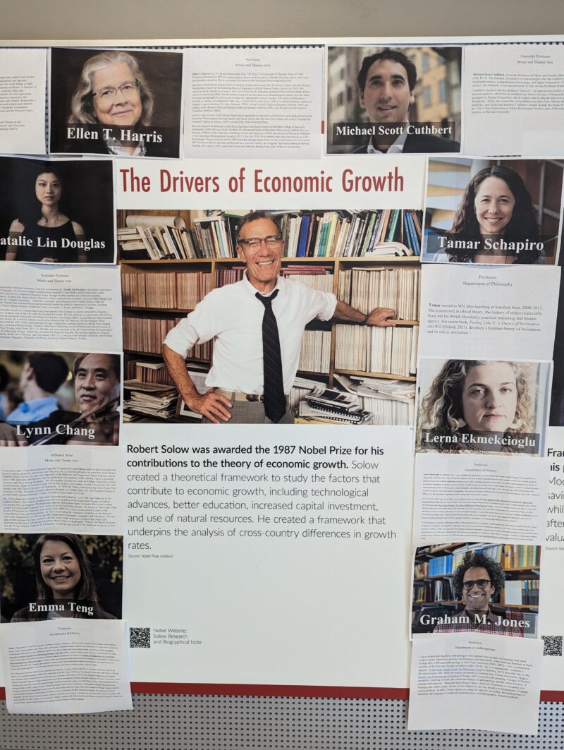2. By centering the Field of Economics, this display further perpetuates the technical bias pervasive at MIT that the value of a field of research, knowledge, and exploration is linked to its “technical rigor.” SHASS is composed of humanists, artists, and social scientists, but this display reinforces the notation that even in SHASS, the fields involving more technical and scientific modes of inquiry are more valuable and worthy of celebration.