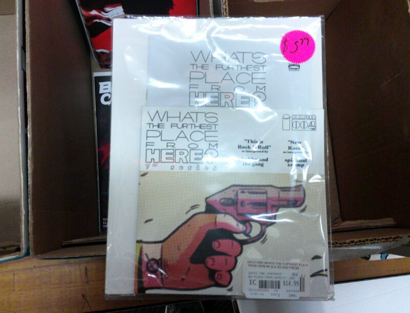I found this cool thing that i ended up buying. It’s called “What’s the Furthest Place From Here?” and it came with a picture book AND a round group of music!! I bought 2 of them (#4 and #6, the only ones they had) and listened to them at the Music book building. It was very good! They had covers of songs by music people that I enjoy, like AJJ, Joyce Manor, and Julien Baker.