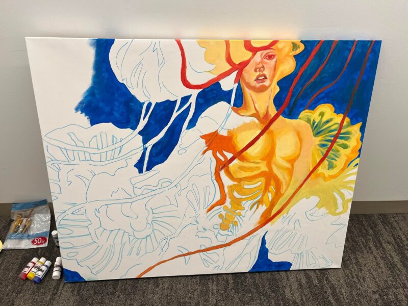 you may have noticed how the majority of art here was painted by ’24s and younger. these are the students who never lived in the dorm prior to renewal and are only just experiencing what it’s like to be a member of a BC community. considering this, I think it’s wonderful that the younger classes have literal blank canvases to work on. having the ability to make art is an incredible means of bringing people together to shape a floor environment, and I’m happy to see the diversity of art that’s erupted around the dorm thus far. it’s a shame that no paint is directly on the walls, but hey, we’re definitely managing.