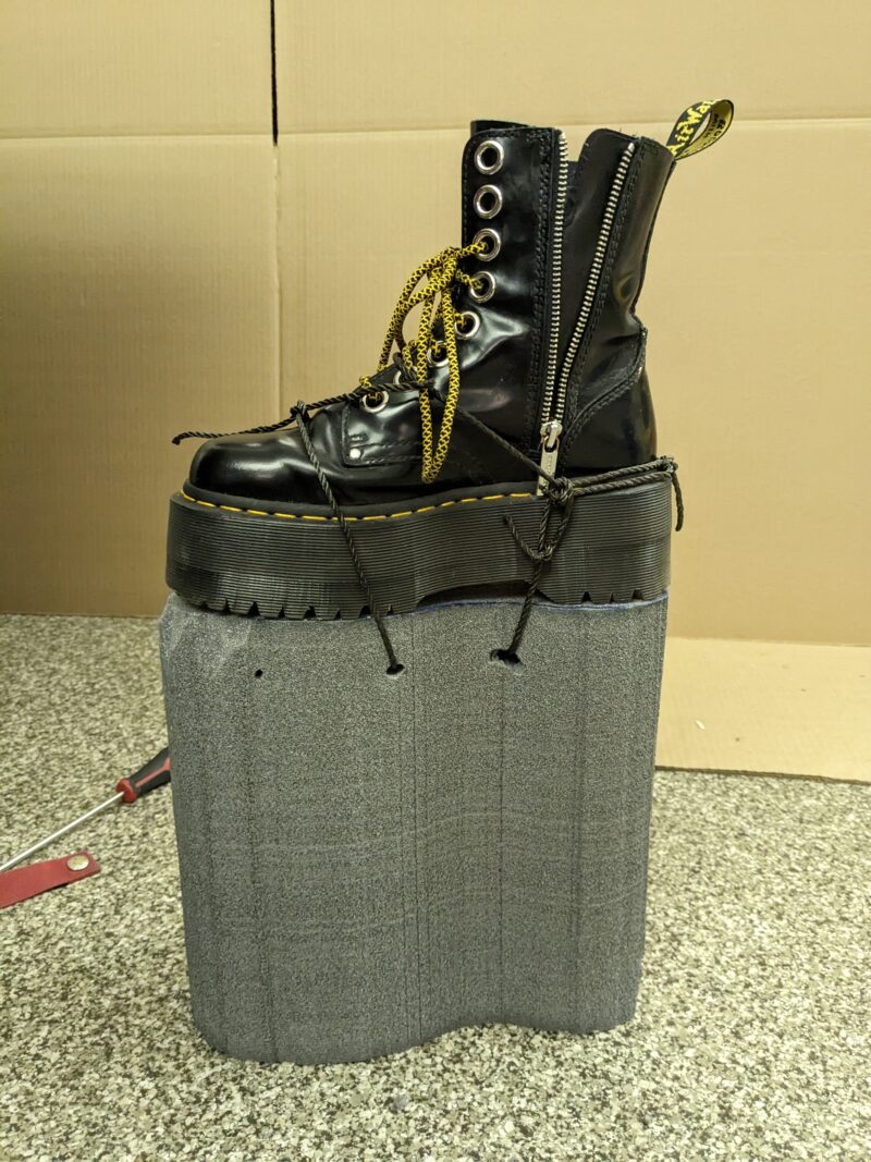 The first month or so was an ideation stage. I proposed several things, but the most popular of my ideas was an adjustable platform boot that could lift a person up to see above crowds at concerts. Everyone laughed when I talked about it, for obvious reasons. This idea made it to the second-to-last round, and the first of four major milestones in the class.