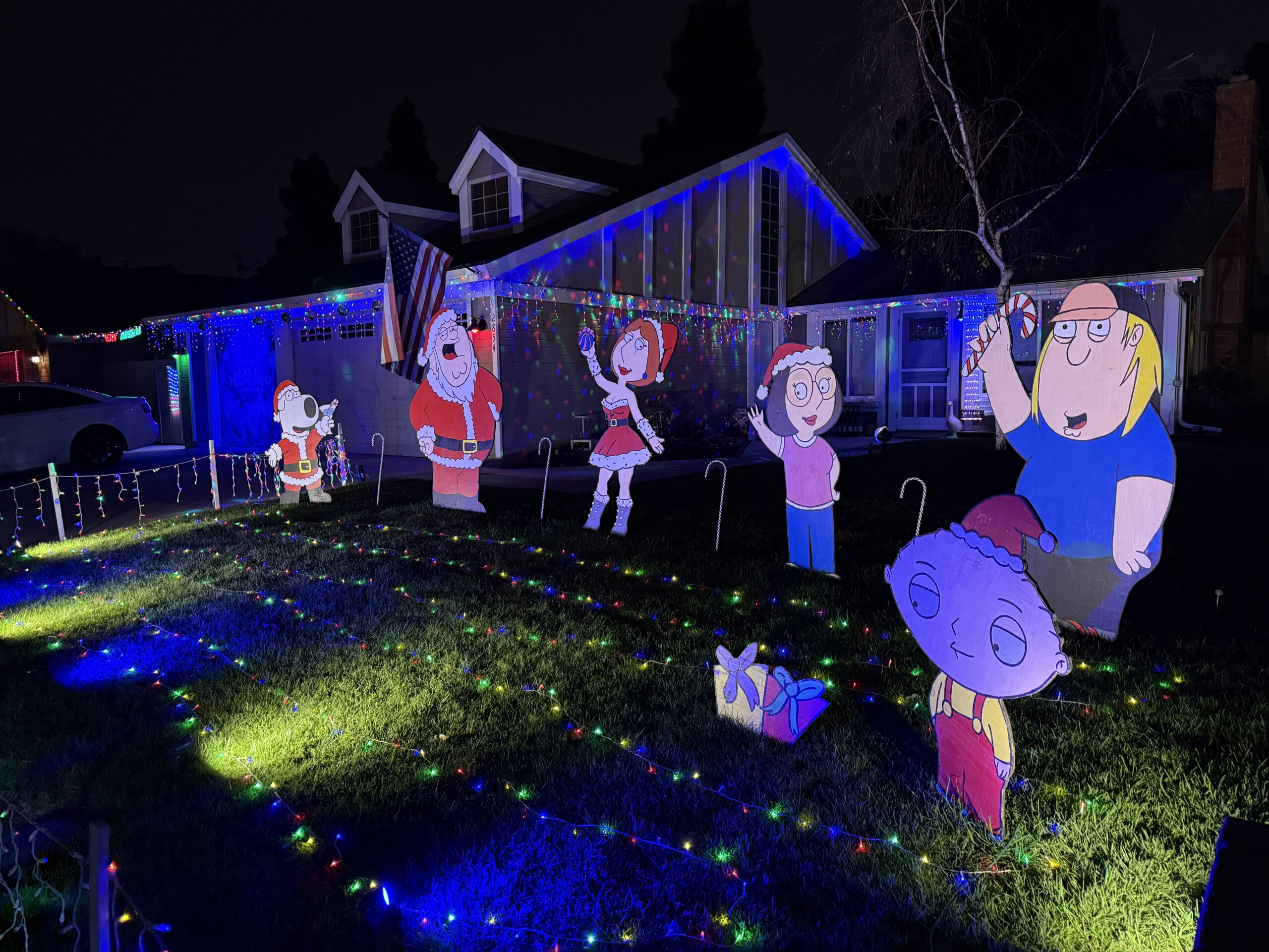 christmas family guy cut outs on a lawn
