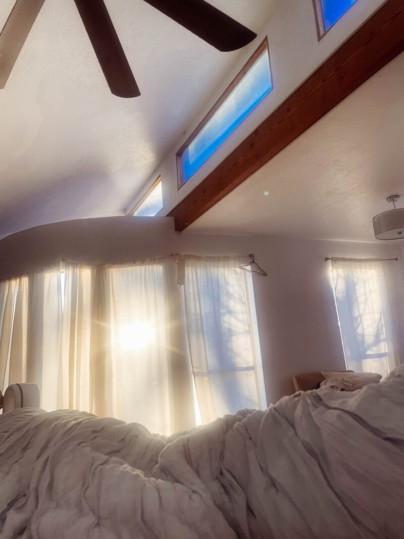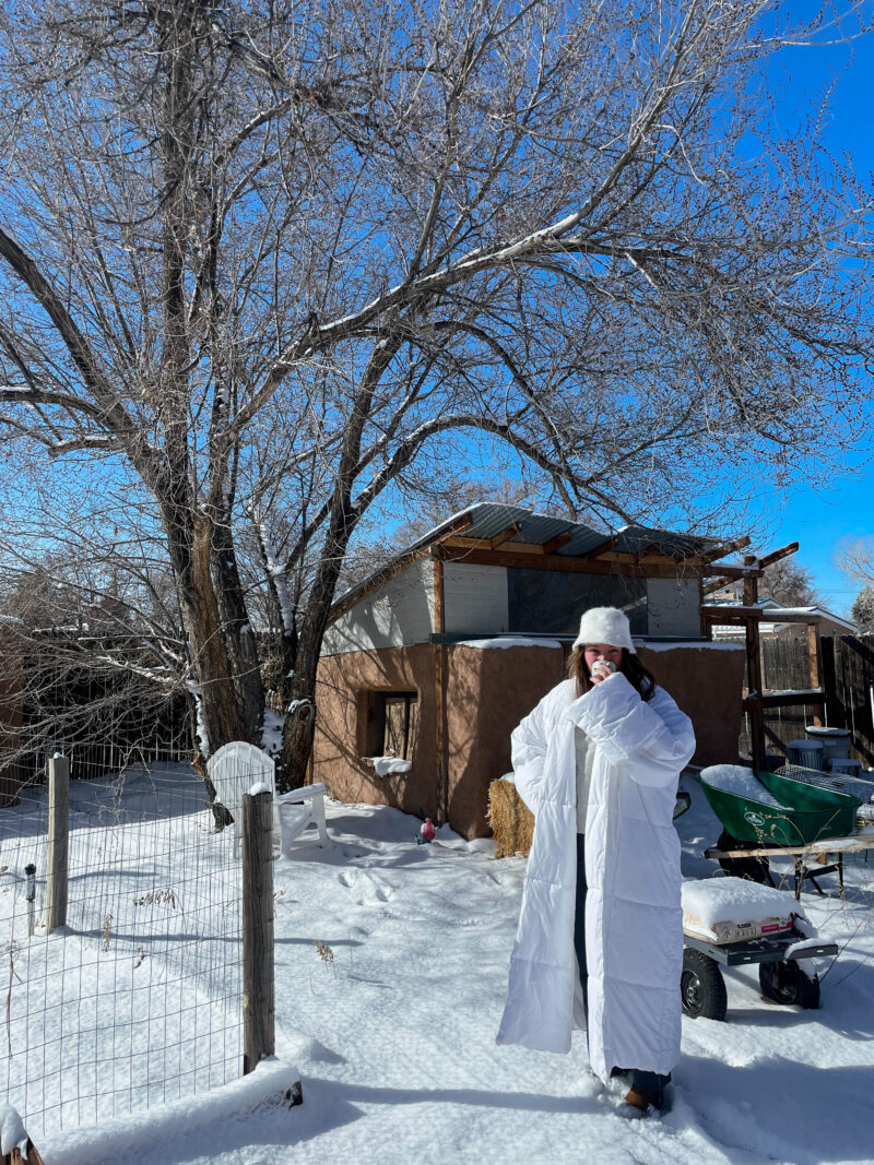 In 2020, I had a frustrating, stagnating job and family chaos was burning me out. Meanwhile, the pandemic. My husband I moved to Albuquerque and nested hard–planted beans, peppers, and tomatoes, set up eleven chickens in the squat straw-bale coop in the backyard, and rapidly collected an overabundance of Craigslist furniture (later, we saw sense and pared it down). Two of my best friends came to live with us the summer of 2020, and in that period of pre-vaccine uncertainty and social distance, we were lucky to have a house that was lively and safe. When fall came, I quit the job, intending to take a new job I had been offered, but when it came time to commit, I had a strong feeling that the new job was not in fact what I wanted. I took some time to figure out what to do next. I had about a year of underemployment, intermittent freelance projects, spiraling, unspiraling, and planning. I applied to grad programs and started working at a landscape architecture and planning firm I really liked. The year felt long, and I was unsure and sometimes afraid, but in retrospect, it was in some ways a golden time, a rare extended pause. Our house was full of light and barely insulated. For the winter, my husband sewed me a literal cocoon in the form of a housecoat made out of a duvet.